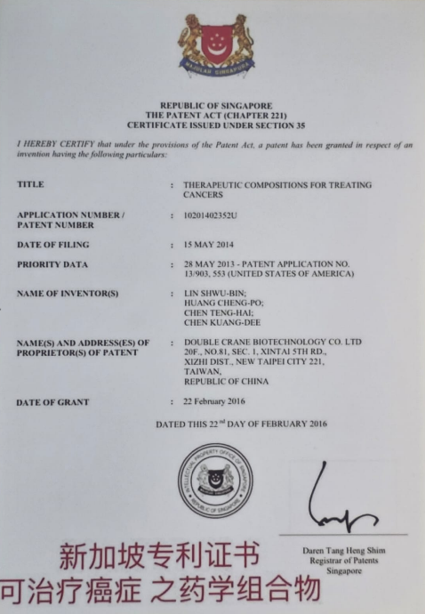 1. Patent from Singapore Authorities